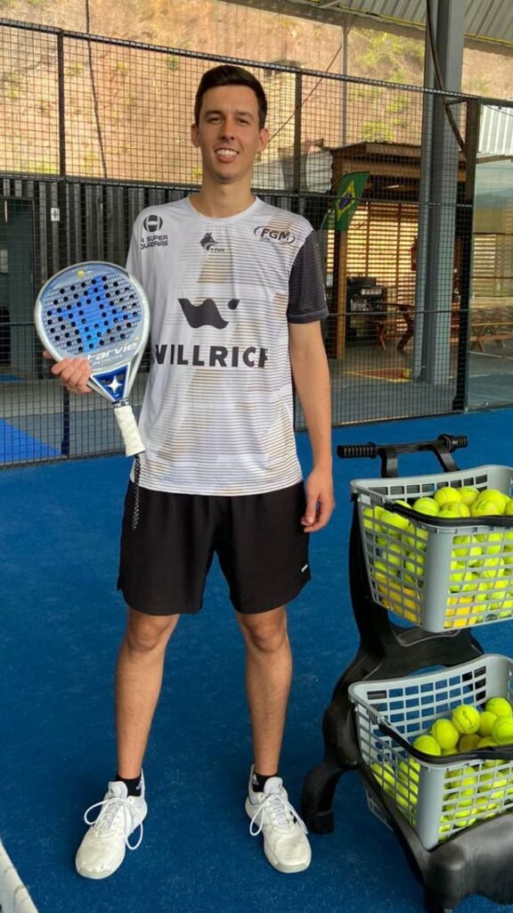 Guilherme é conhecido por sua competitividade e paixão pelo pádel. Agende uma aula e aprenda com alguém que vive e respira o esporte!